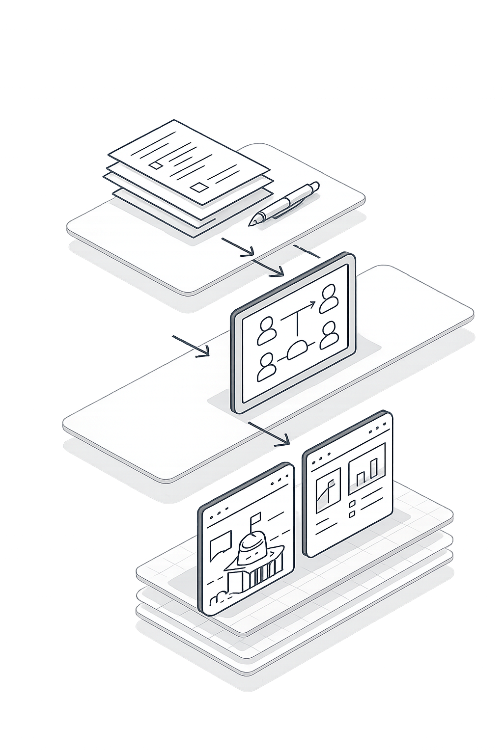 Redesigning decade-old employee management system, untangling complex multi-step workflows into streamlines experiences for reporting and data review.